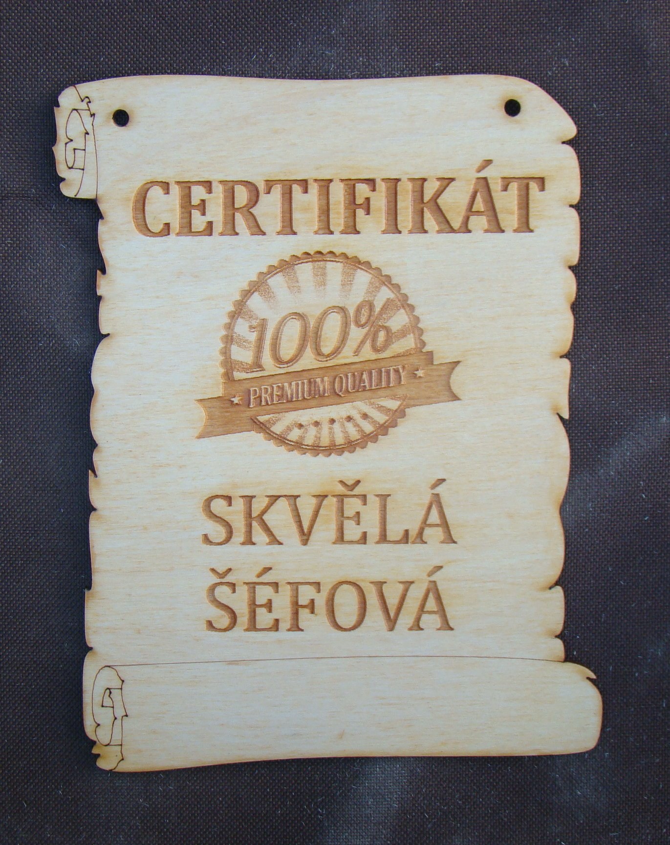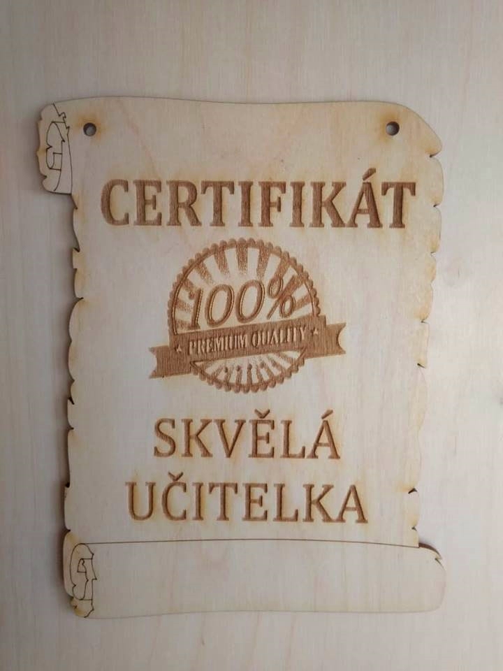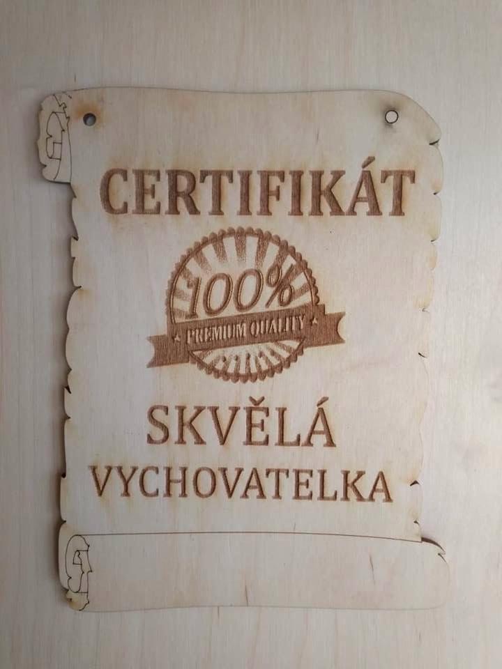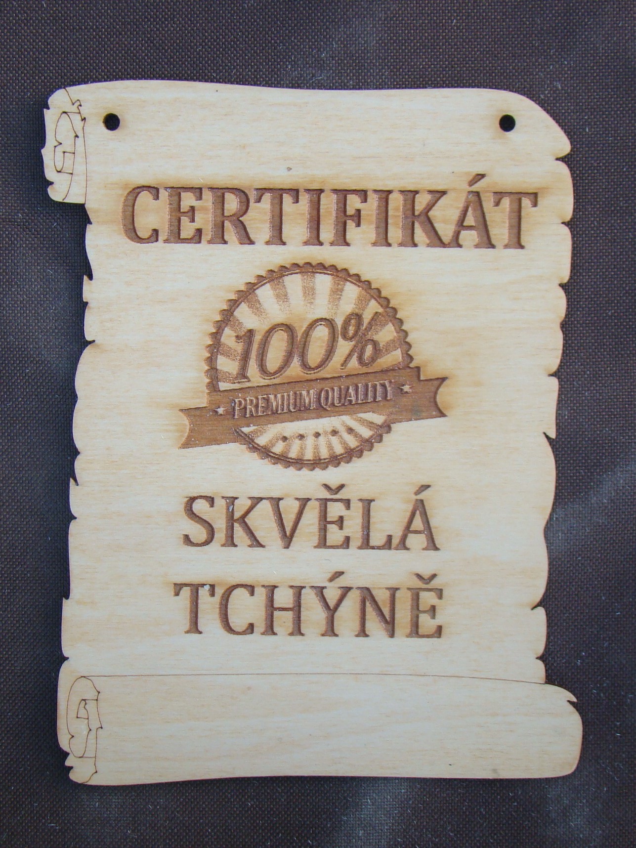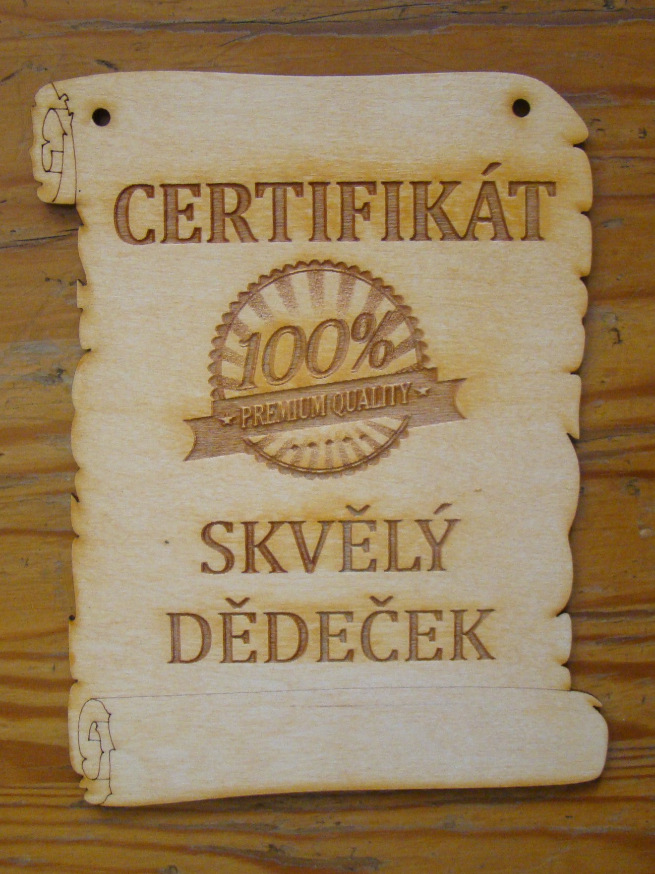 Rozšířili jsme sortiment o dřevěné gravírované cedulky, citáty,  portréty z fotografií, obrázky, přáníčka, domovní čísla a jiné dekorace, dále o přívěsky a naušnice z cedrového dřeva. Je možné se domluvit i na vygravírování Vaší fotografie či textu.