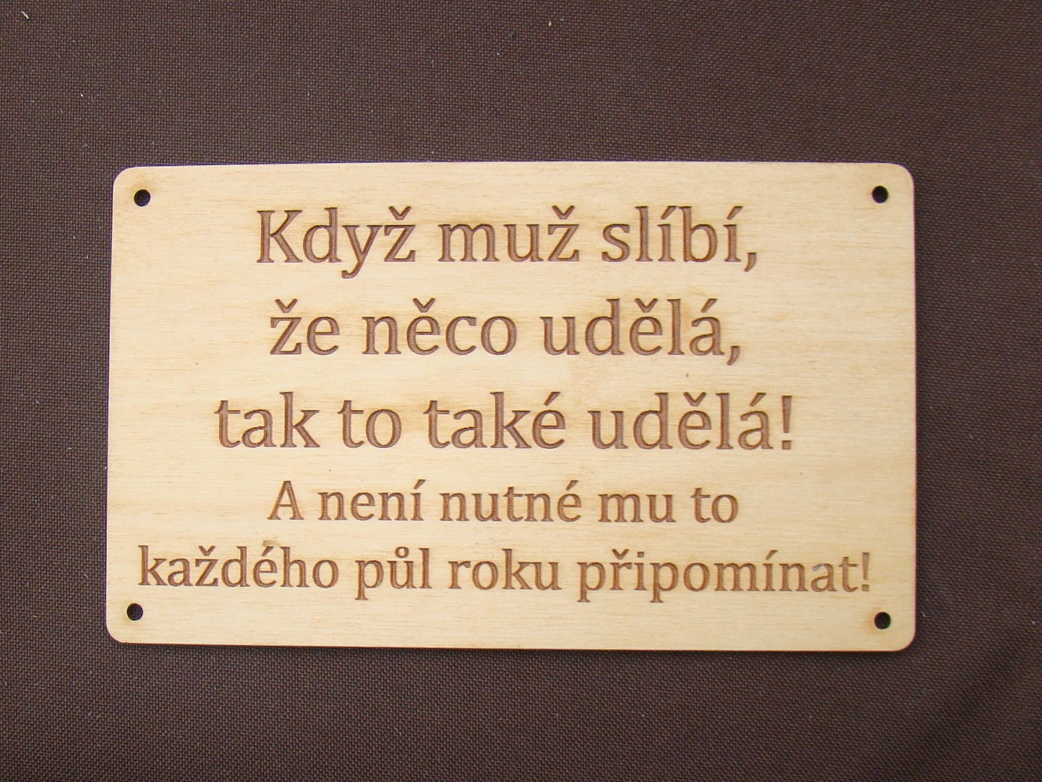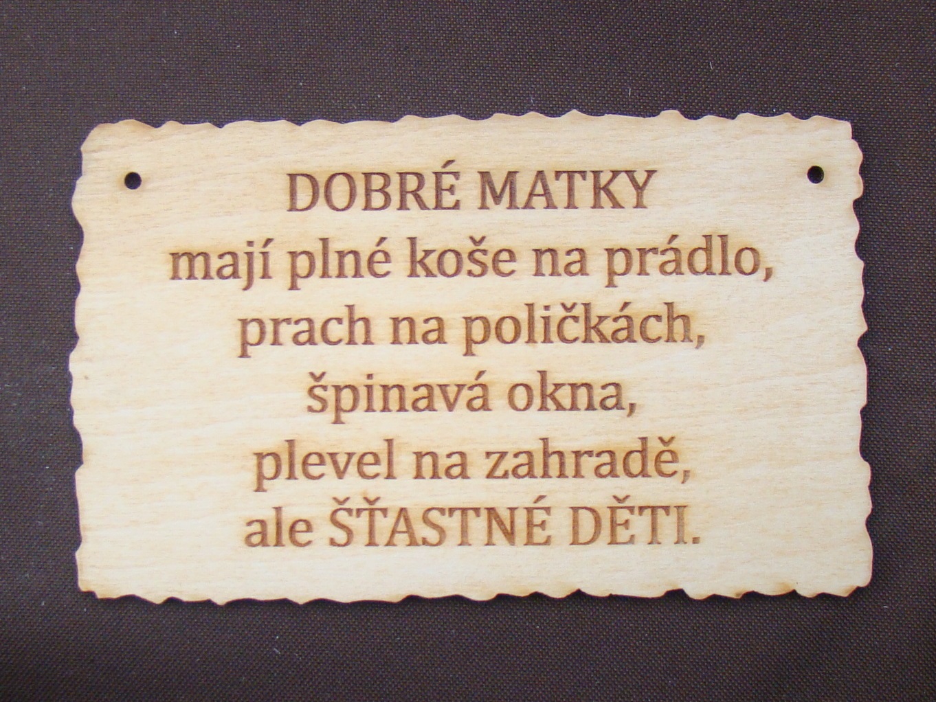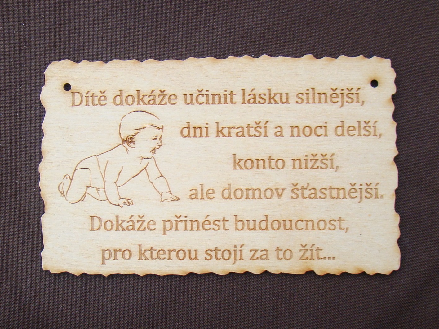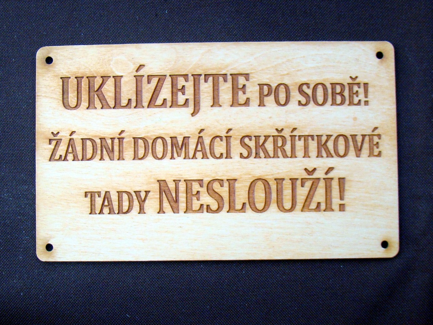 Rozšířili jsme sortiment o dřevěné gravírované cedulky, citáty,  portréty z fotografií, obrázky, přáníčka, domovní čísla a jiné dekorace, dále o přívěsky a naušnice z cedrového dřeva. Je možné se domluvit i na vygravírování Vaší fotografie či textu.