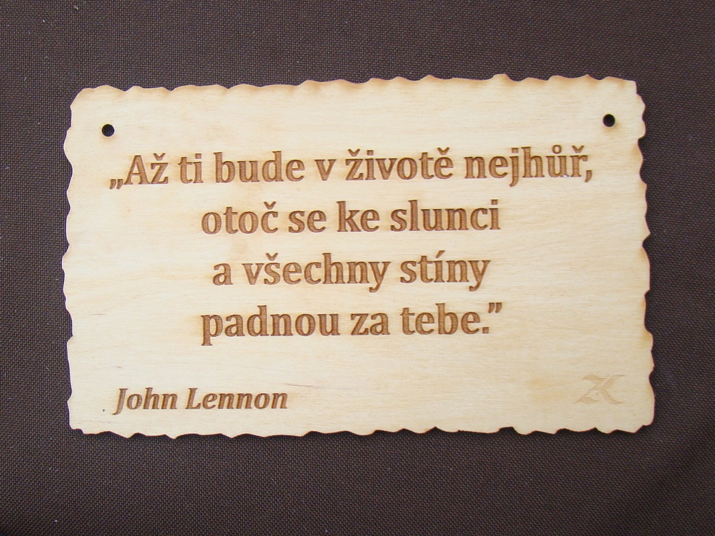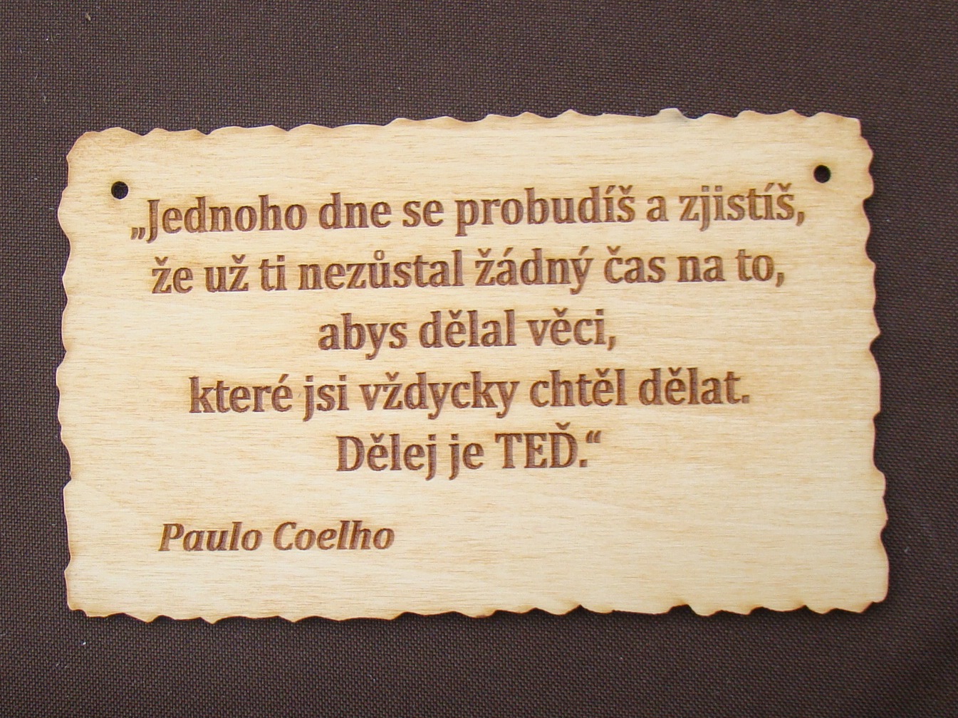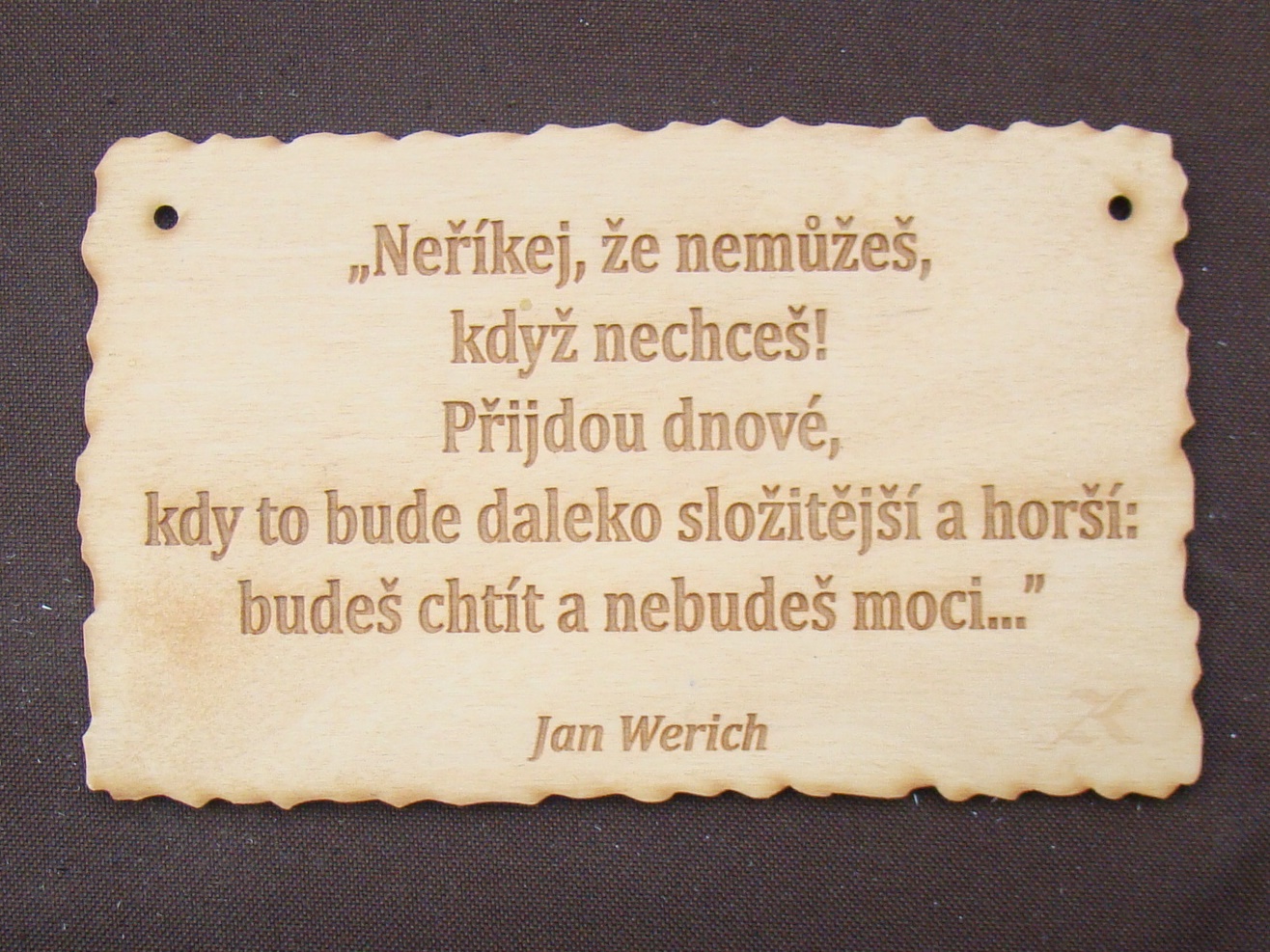 Laserem gravírované cedulky z 3mm březové překližky, 2 vrstvy laku, 20 x 12 cm, téma: motivační, životní moudra