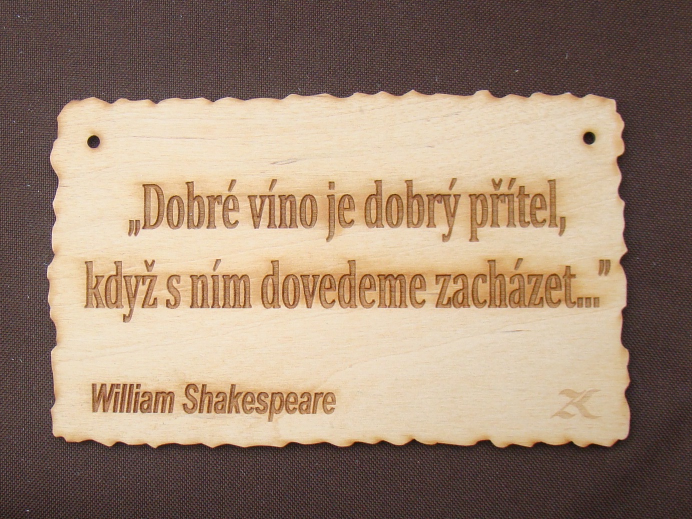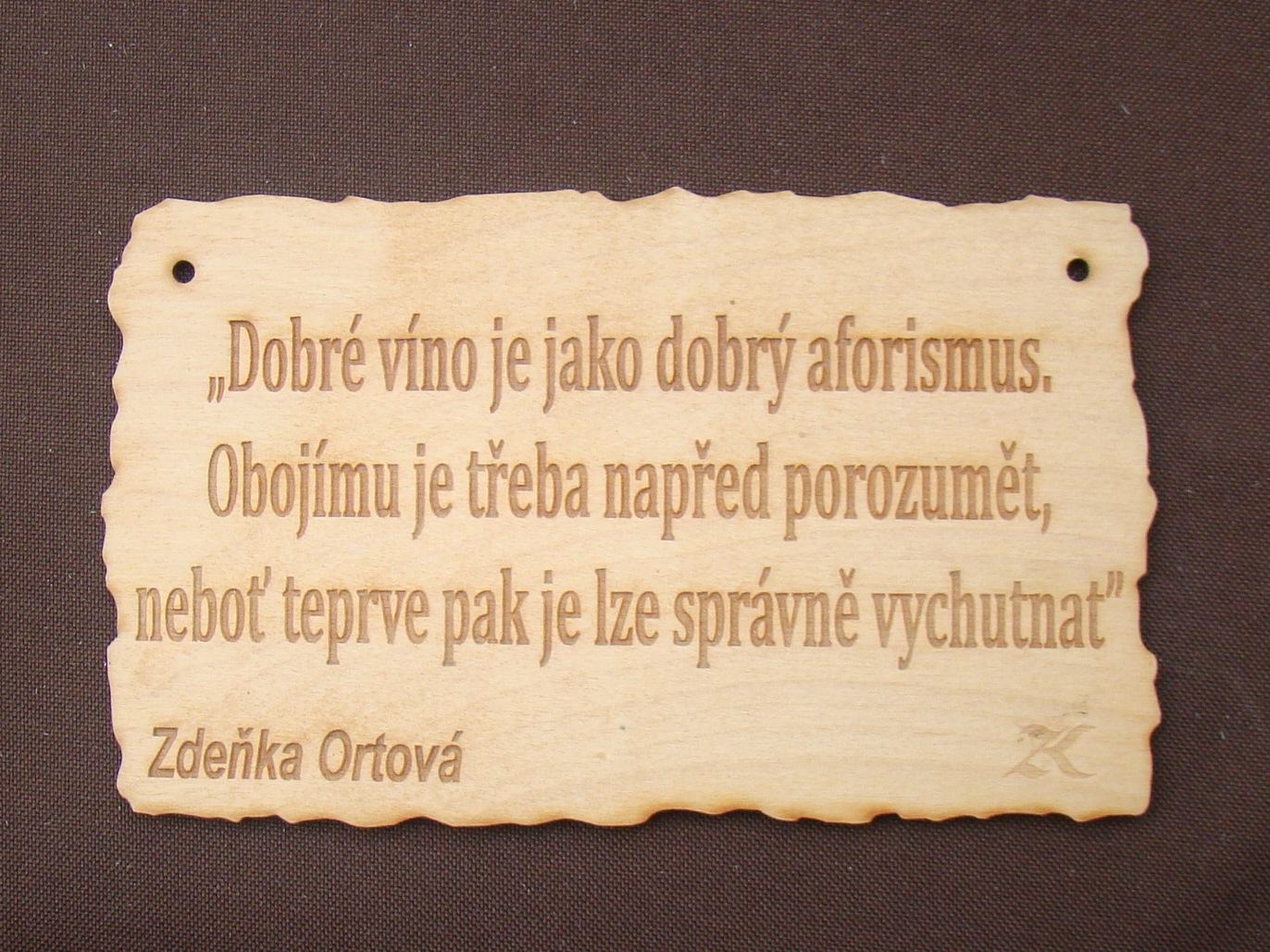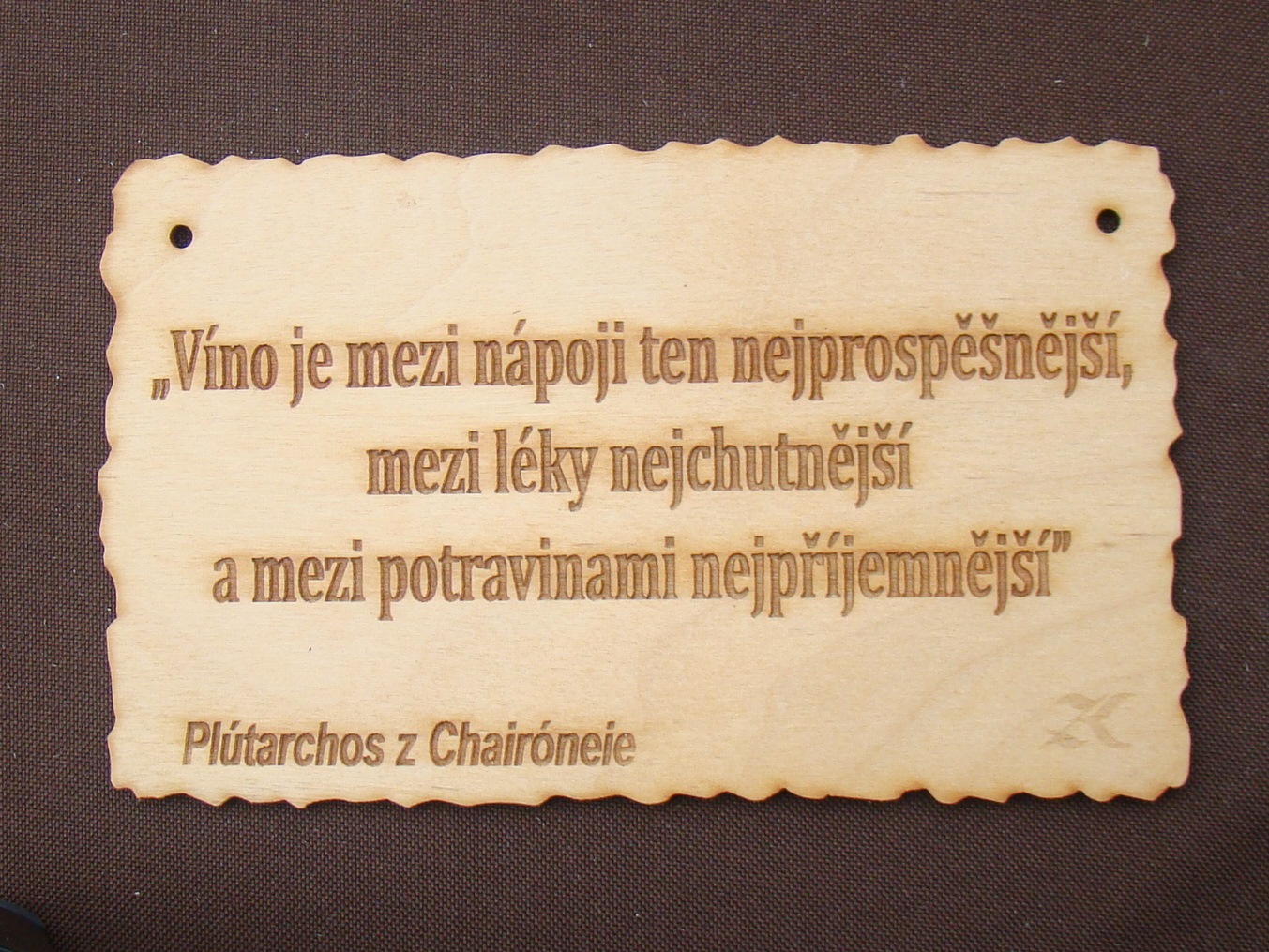 Rozšířili jsme sortiment o dřevěné gravírované cedulky, citáty, portréty z fotografií, obrázky, přáníčka, domovní čísla a jiné dekorace, dále o přívěsky a naušnice z cedrového dřeva. Je možné se domluvit i na vygravírování Vaší fotografie či textu.