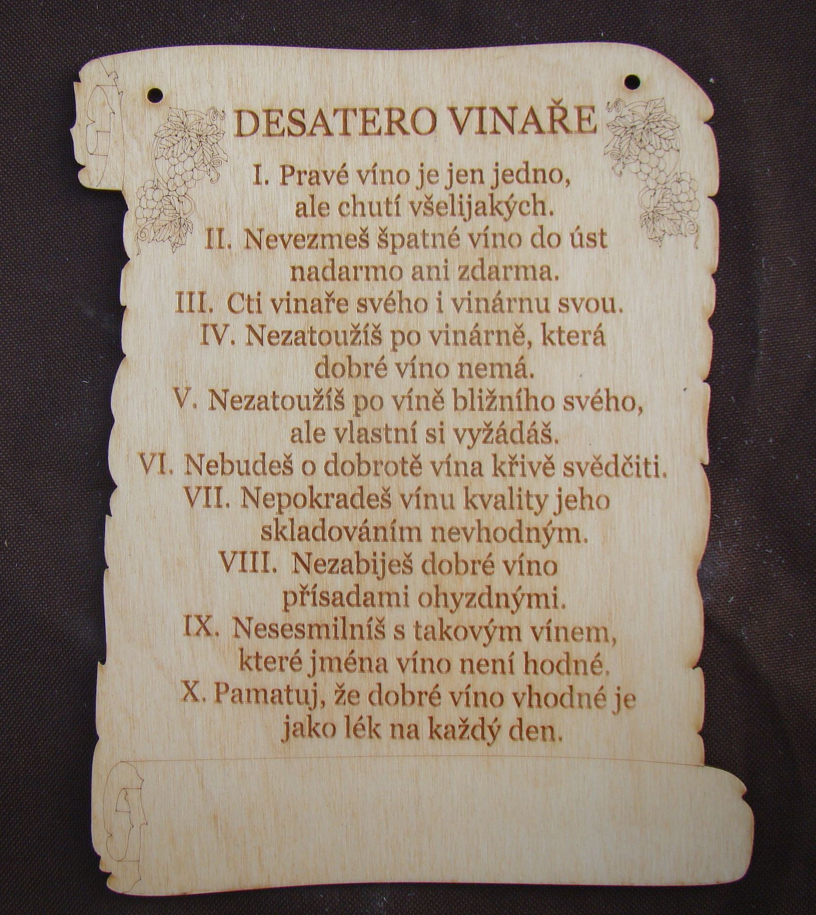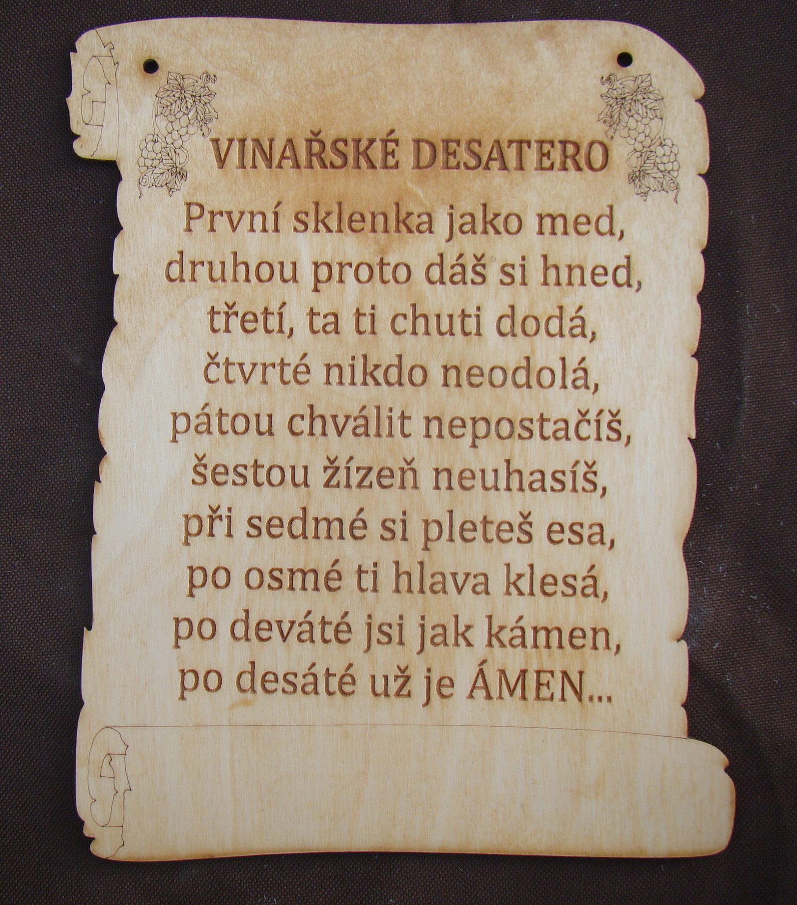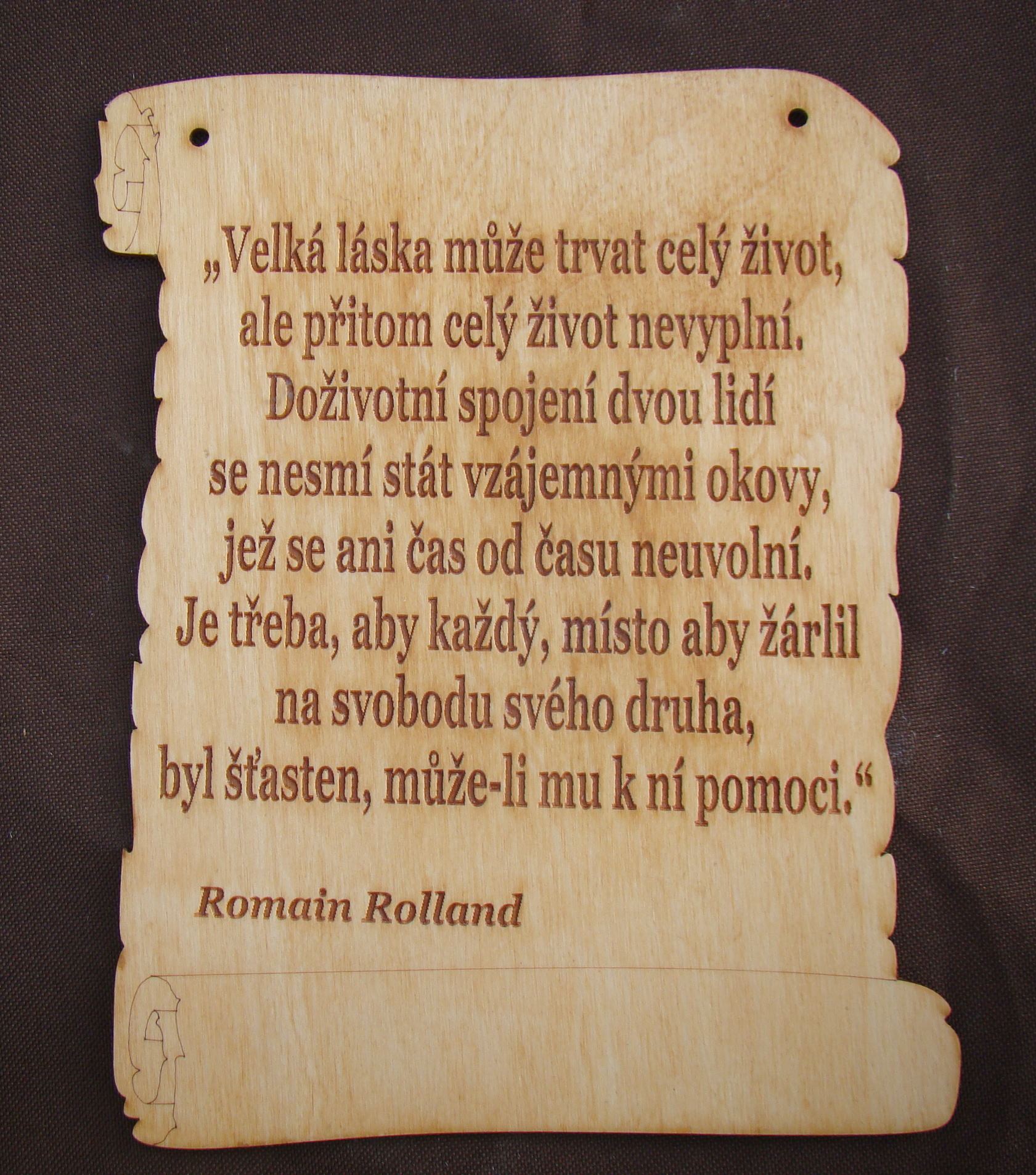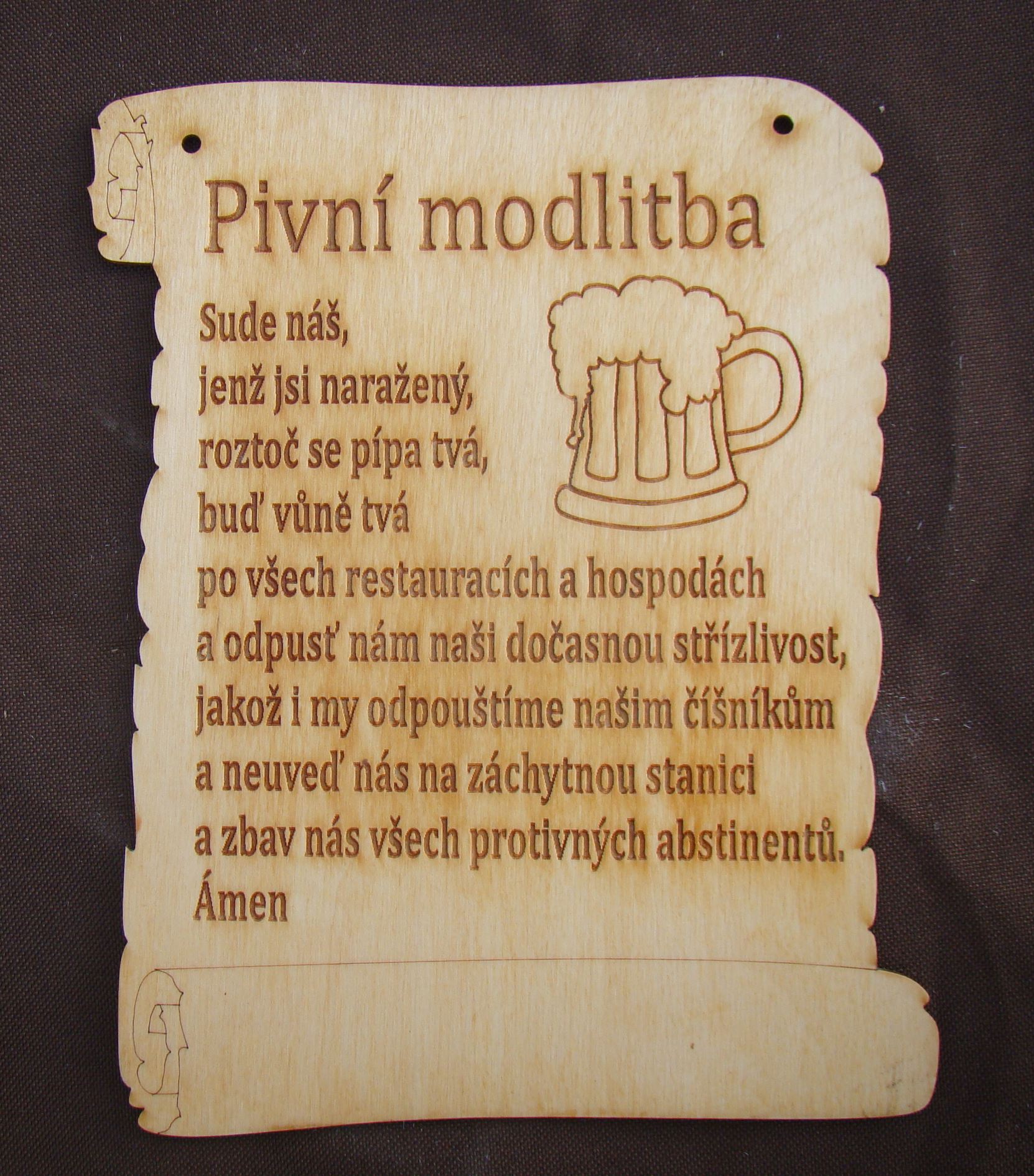 Laserem gravírované cedulky z 3mm březové překližky, 2 vrstvy laku, "svitek" 24 x 18 cm