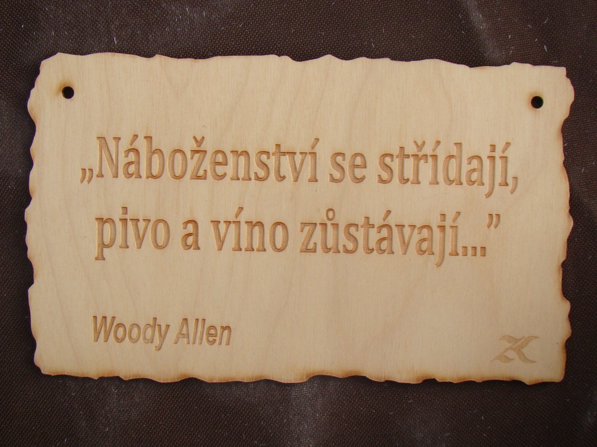 Rozšířili jsme sortiment o dřevěné gravírované cedulky, citáty, portréty z fotografií, obrázky, přáníčka, domovní čísla a jiné dekorace, dále o přívěsky a naušnice z cedrového dřeva. Je možné se domluvit i na vygravírování Vaší fotografie či textu.